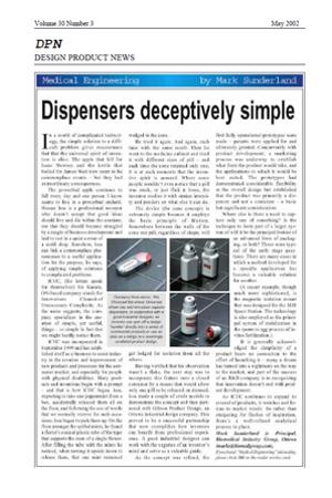The following article was written about IC UC and the universal-pill dispenser. It was published in the "Design Product News - DPN" - Volume 30 Number 3 - May 2002.